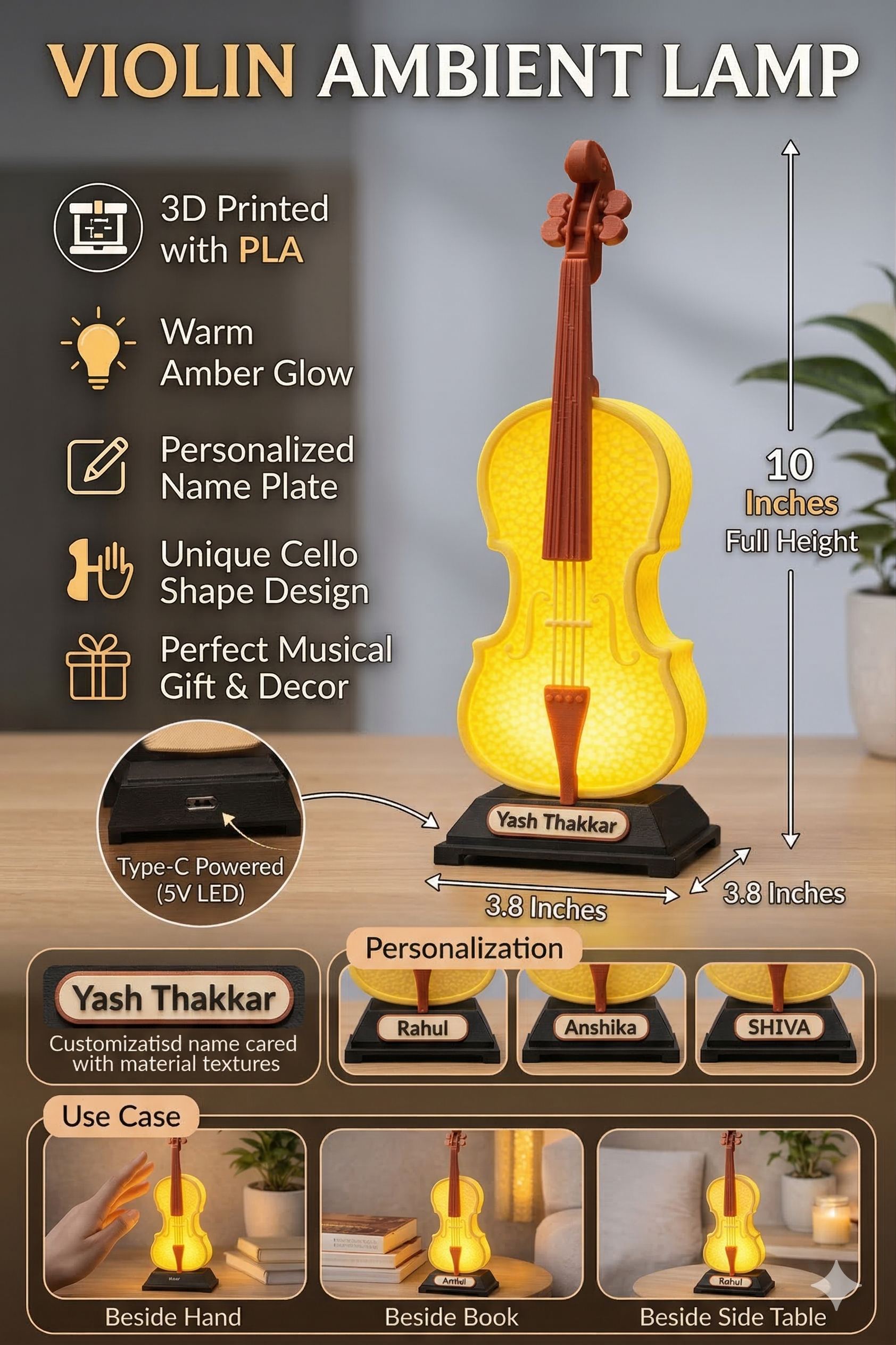 Violin Lamp โ Custom Name